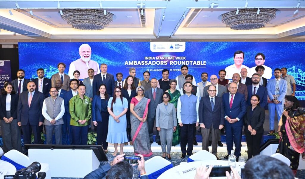 New Delhi: The Ministry of Ports, Shipping and Waterways successfully organized the Ambassadors’ Roundtable Meet in New Delhi as a precursor to the forthcoming India Maritime Week (IMW) 2025 scheduled to be held in Mumbai from 27th to 31st October at the NESCO Exhibition Centre. The event, held at Hotel Taj Mansingh, New Delhi brought together resident Ambassadors and High Commissioners from over 25 countries, along with senior officials, industry leaders, and representatives from multilateral and bilateral institutions.